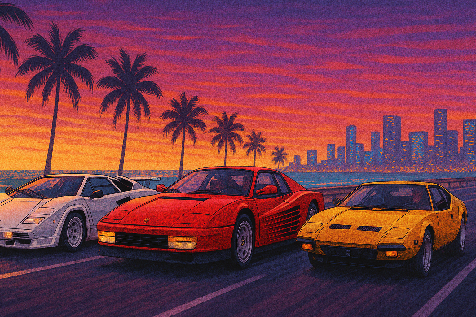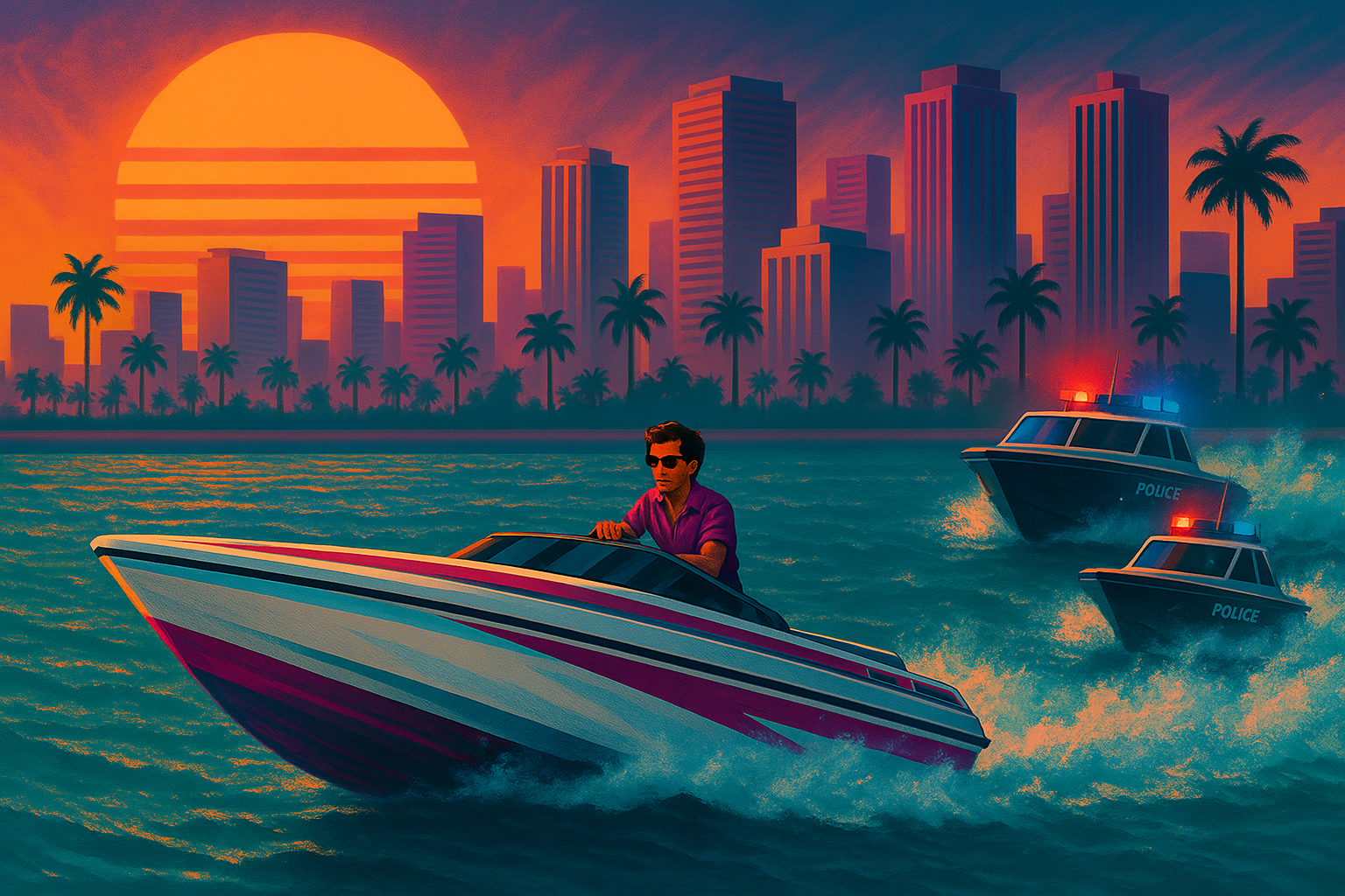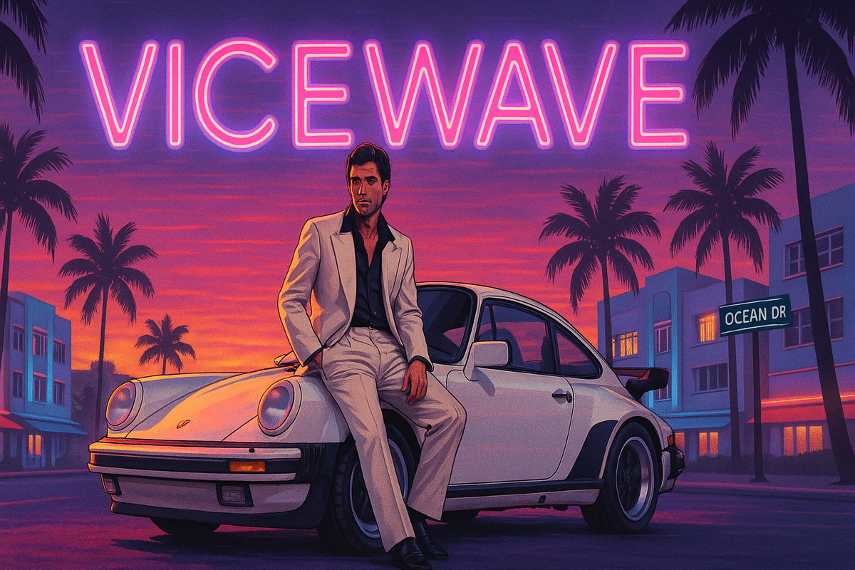 Capture the essence of Miami Vice and Scarface with sunset and neon designs that thrill.