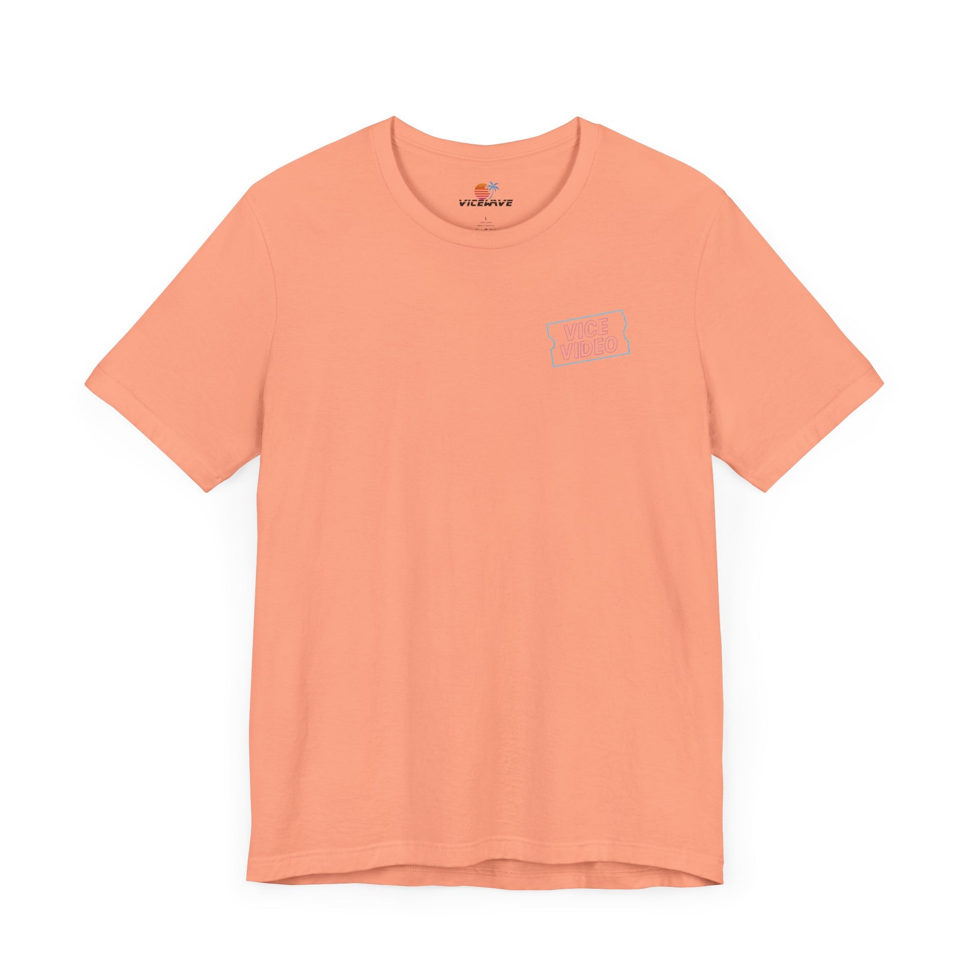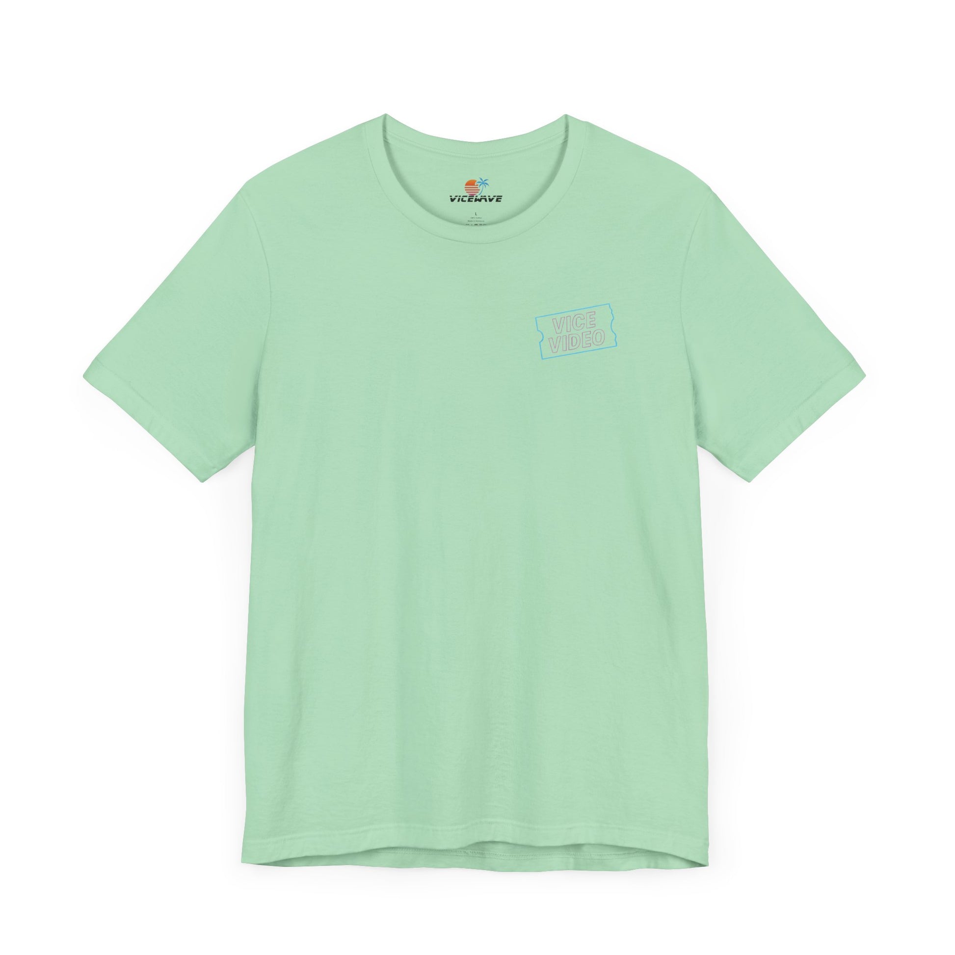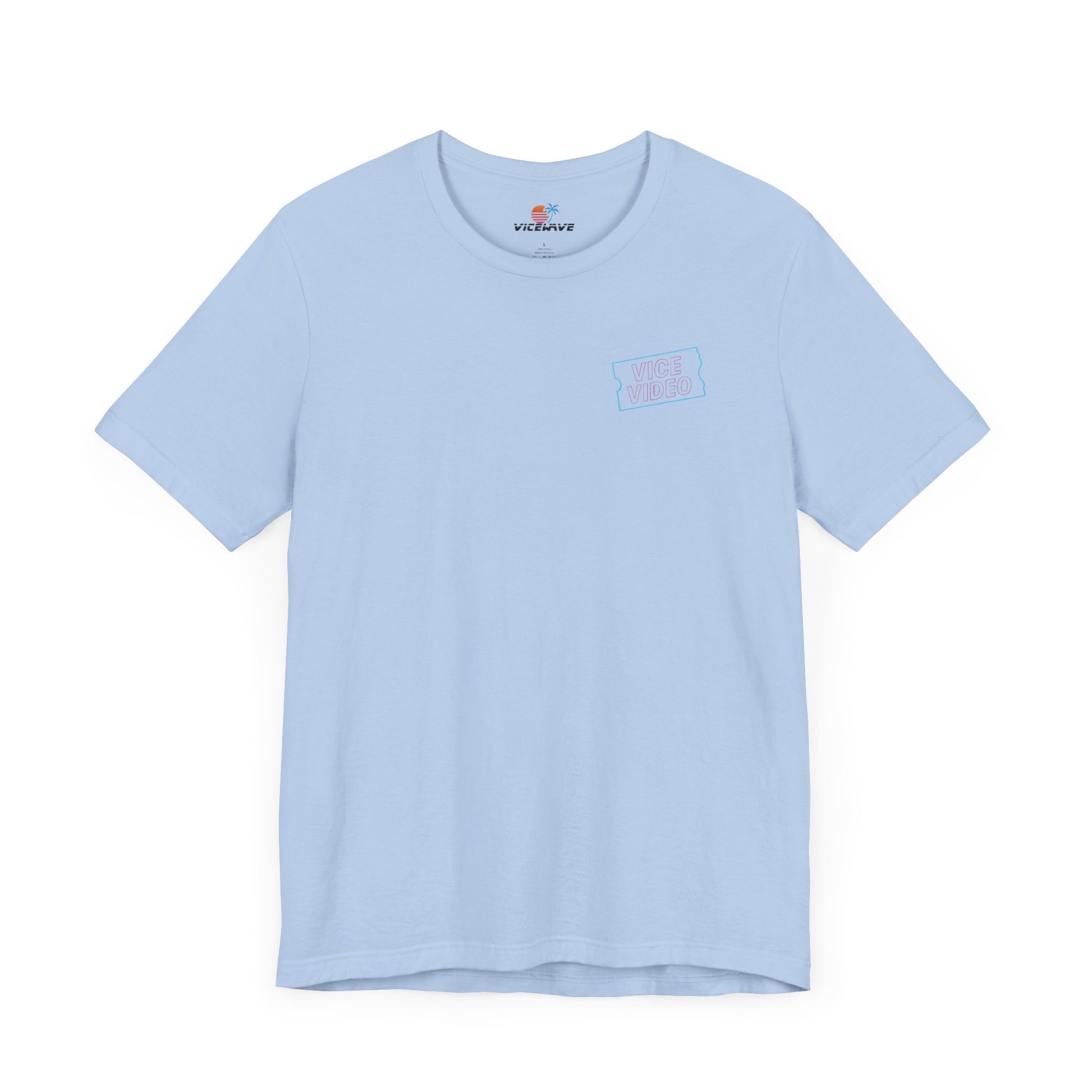Step back into the glow of nostalgia with the Vice Video Tee, a wearable love letter to Friday night bike rides, neon-lit storefronts, and the golden age of VHS. Featuring a vibrant illustration of a retro video rental shop bathed in the warm glow of dusk, this tee captures the magic of simpler times — where the only plan was picking the perfect flick.