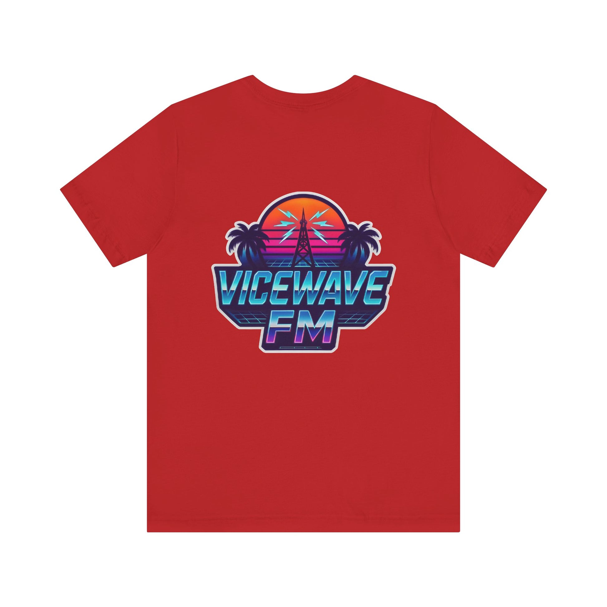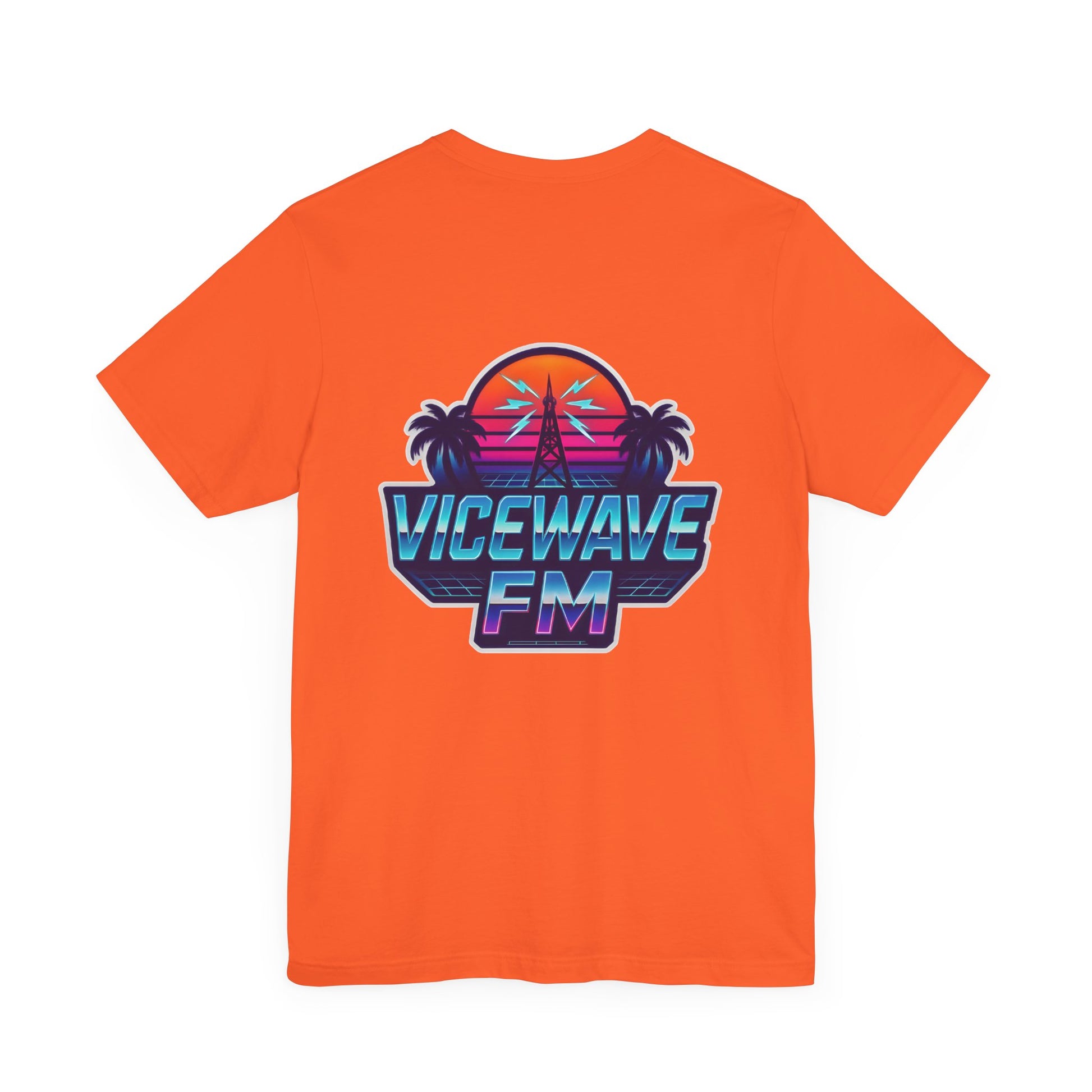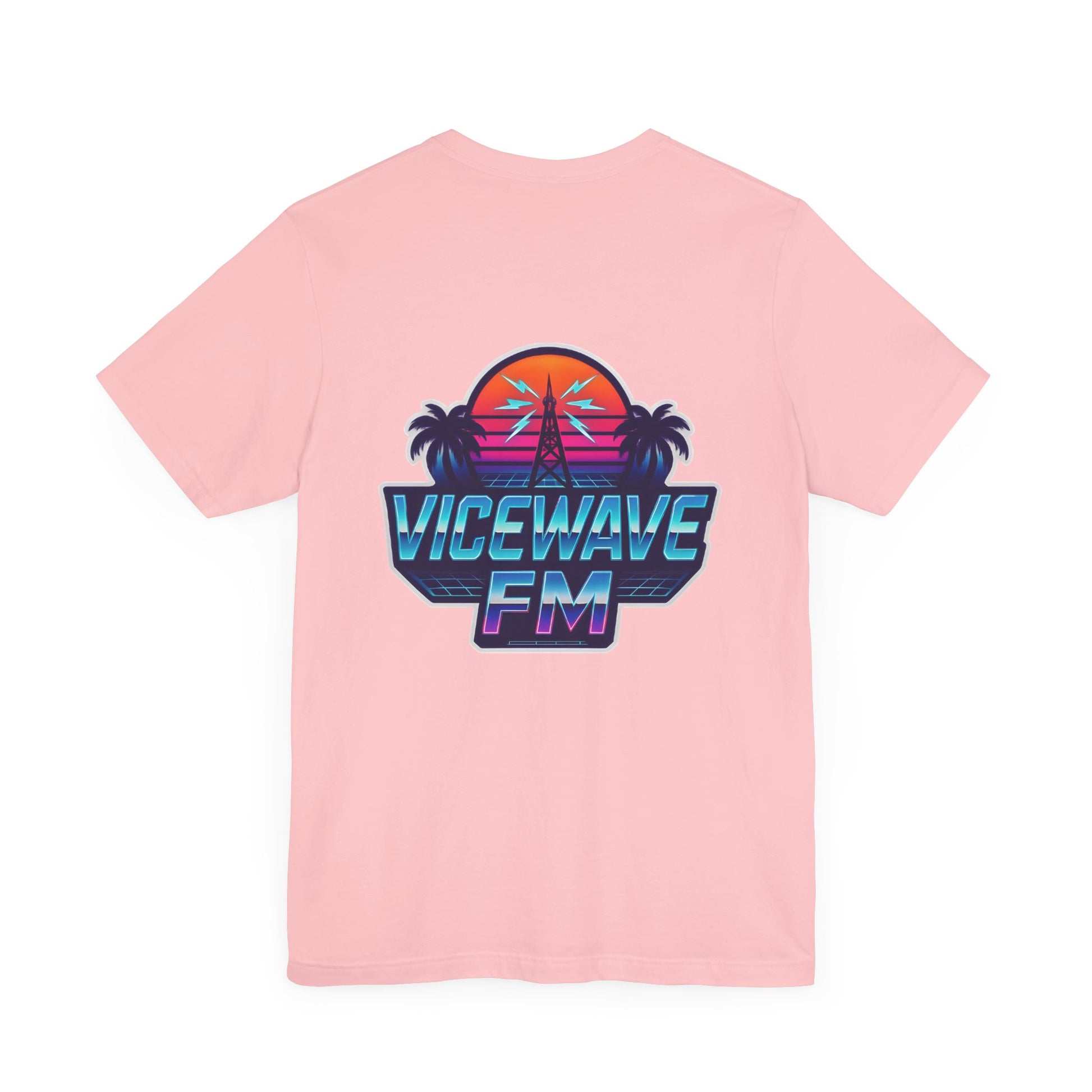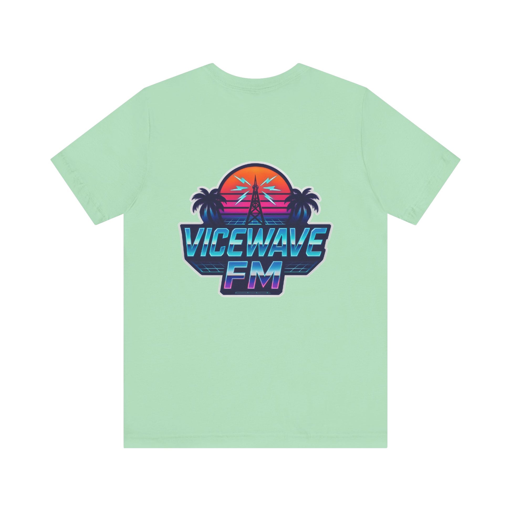 Framed by silhouetted palms and styled in electric gradients of cyan, magenta, and ultraviolet, the Vicewave FM logo gives you that perfectly tuned aesthetic for cruising boulevards or Jammin' out to your summer mixtape. Whether you're vibing poolside or dropping your favorite playlist, this tee keeps your look on the right wavelength.